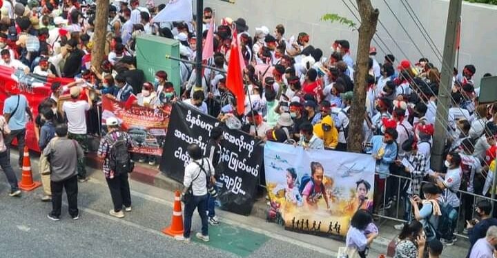 Meanwhile report reaching Media Bypass News stated that protesters has gathered in front of the Myanmar Embassy in Bangkok Wednesday morning to mark two years since the military coup and shouting slogans against Burmese military junta.