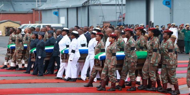 “Indeed, the SANDF is for the brave, for the proud. We have fulfilled our duty to bring our soldiers home. We must fulfil our duty to complete their mission”, the President added.Ramaphosa thanked the Ministry of Defence and the leadership of the SANDF for making every effort to repatriate the remains of these fallen troops to their families. “Our thanks go to the United Nations, Southern African Development Community and other governments for their assistance”.